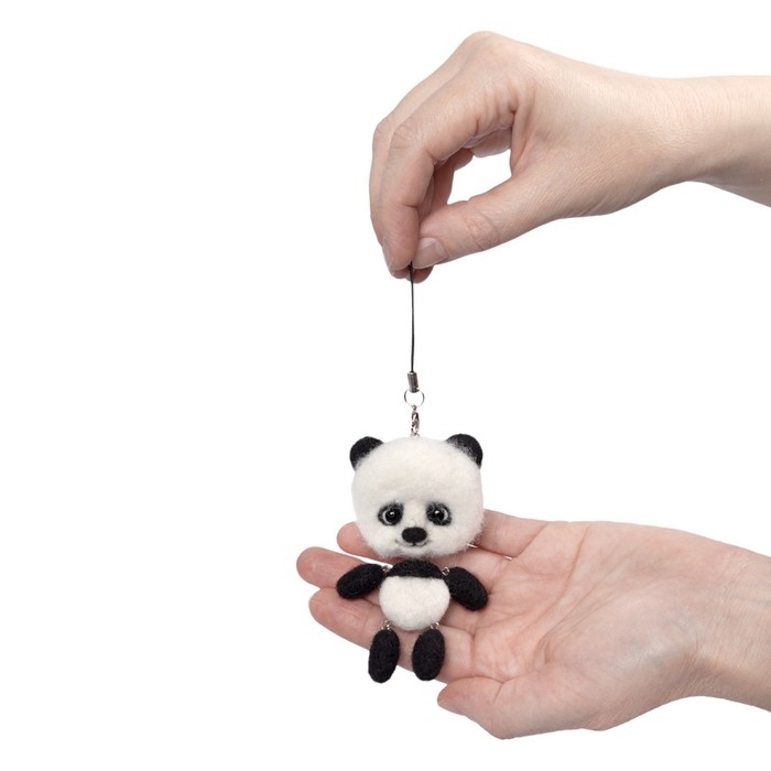 Игрушка брелок «Панда», валяние шерстью