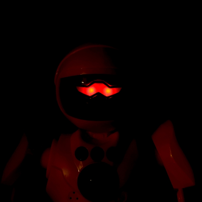 - Световые эффекты: глаза робота светятся разными цветами.