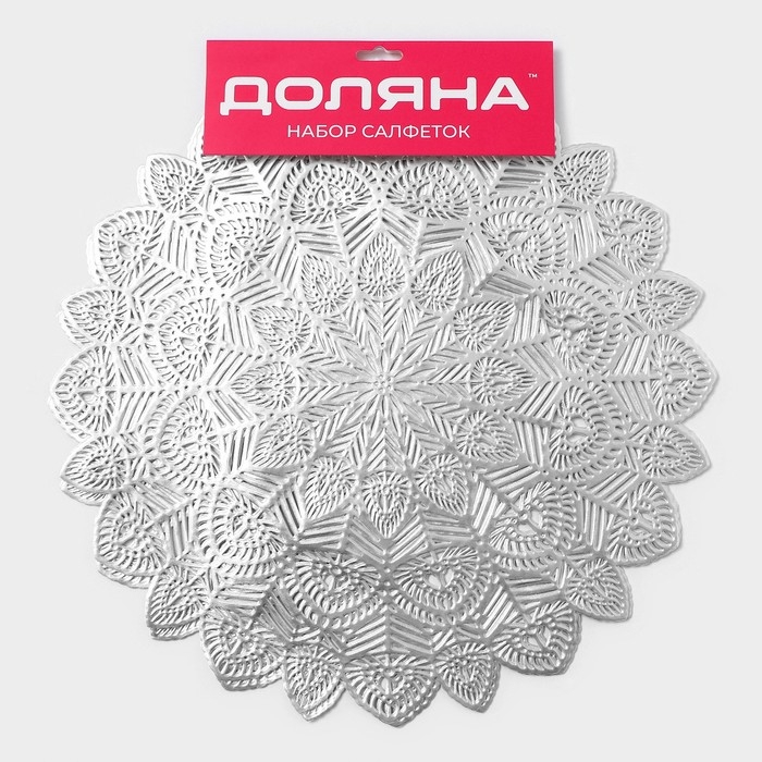 Салфетки сервировочные на стол Доляна «Цунами», d=38 см, 4 шт, цвет серебро