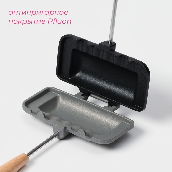 Сковорода двусторонняя для выпечки сэндвичей Доляна, 29,5×14,3×4 см, с антипригарным покрытием
