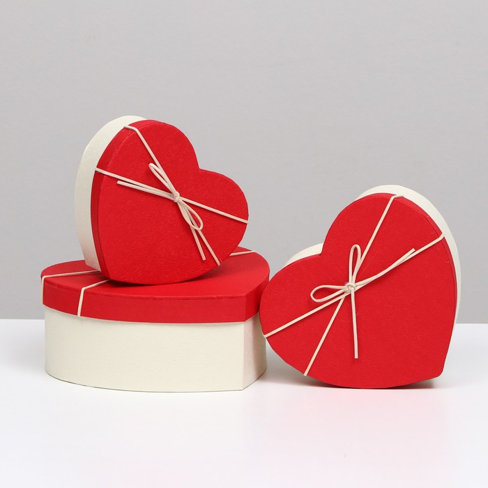 Набор коробок 3 в 1 сердца, белый-красный, 21 х 19 х 9 - 15.5 х 14 х 6 см