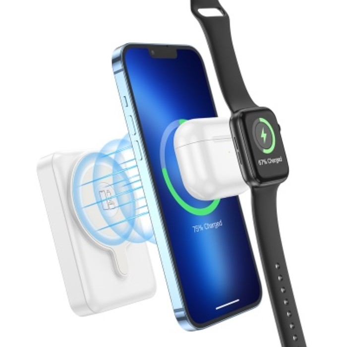 Внешний аккумулятор Hoco Q11,3 в 1,10000мАч,1 Type-C,2 А,дисплей,PD+QC,беспров зарядка,белый