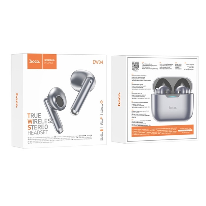 Наушники Hoco EW34, TWS, беспроводные, вкладыши, BT 5.3, 30/250 мАч, серые