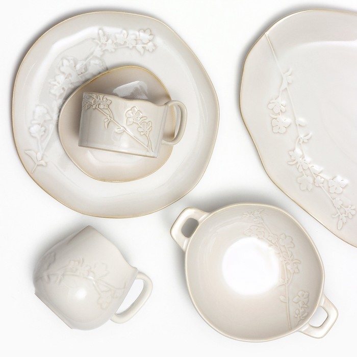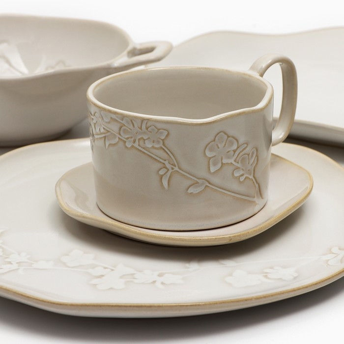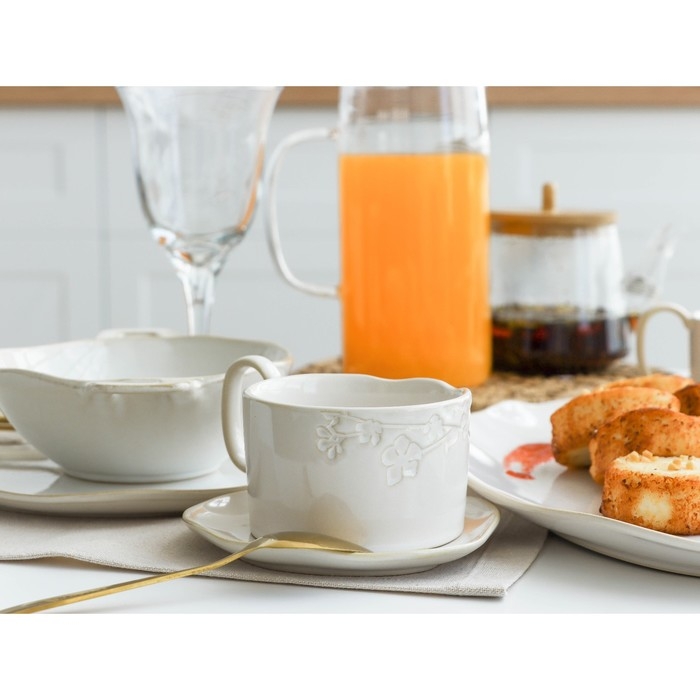 Кружка керамическая с ложкой Доляна «Ноель», 280 мл, цвет бежевый