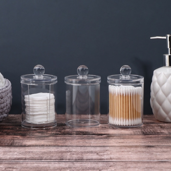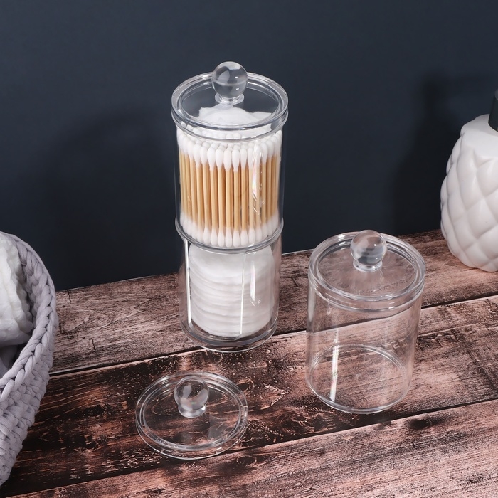Контейнер прозрачный, поэтому локанично впишется в любой интерьер, а Вы всегда будете видеть, сколько осталось ватных дисков и палочек. Сделан контейнер из пластика. Сверху органайзер плотно закрываются крышкой, которая защищает содержимое емкости от пыли и брызг воды.