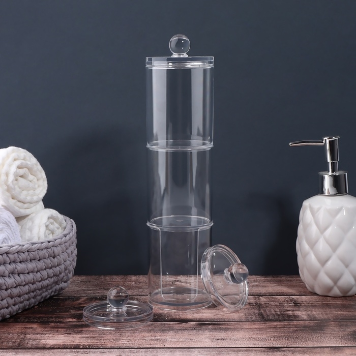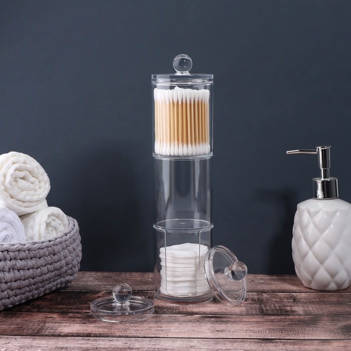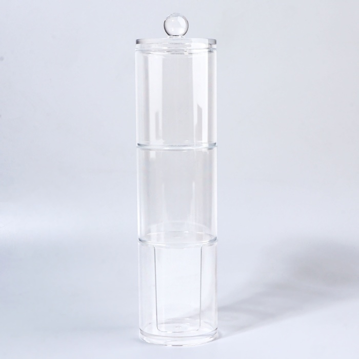 Органайзер для ватных палочек и дисков, с крышкой, 3 секции, 29 × 7 × 7см, в картонной коробке, цвет прозрачный