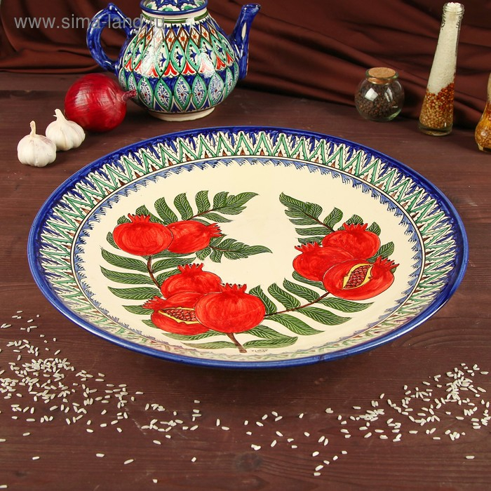 Ляган Риштанская Керамика "Три граната", 42 см, микс