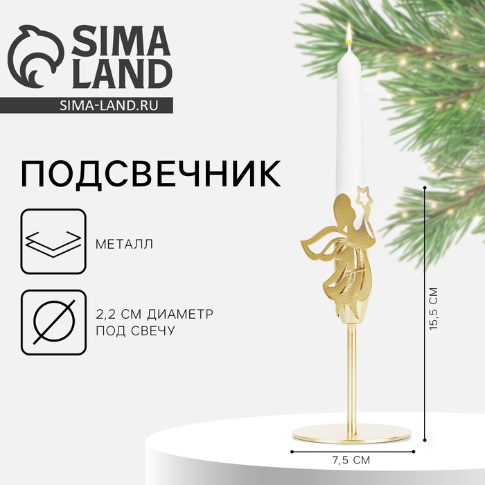 Подсвечник новогодний «Новый год: Ангел, зол., 7,4 х 15,3 см, диам. под свечу 2,2 см