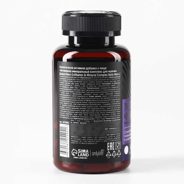 Витамины мужские, укрепление иммунитета, прилив сил и энергии, мультивитамины, 60 таблеток