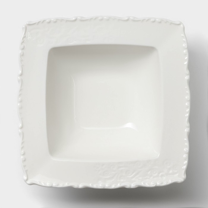 Фарфоровый салатник Magistro Kingdom идеально подходит для сервировки горячих блюд. Этот элегантный салатник белого цвета выполнен из качественного фарфора, что позволяет использовать его в микроволновой печи и мыть в посудомоечной машине. Он обладает рельефной текстурой и выдавленным дизайном, придавая вашему столу утонченный вид.