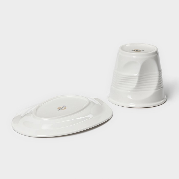 Чайная пара фарфоровая Magistro «Бланш», 2 предмета: чашка 300 мл, блюдце, цвет белый