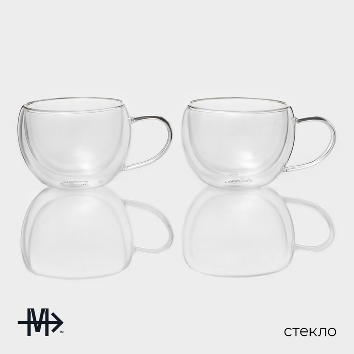 Набор стеклянных кружек с двойными стенками Magistro «Лиди», 250 мл, 13,5×10×7,5 см, 2 шт