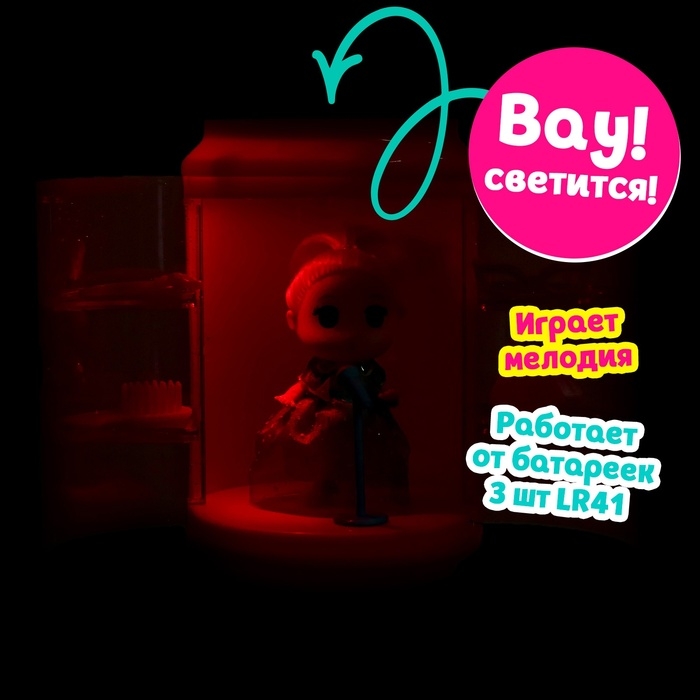 - Кукла высотой 8 см может светиться и играть мелодии, что сделает игру ещё интереснее и увлекательнее