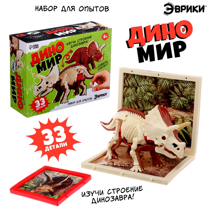 Набор для опытов «Диномир: Трицератопс», строение тела динозавра, 33 детали