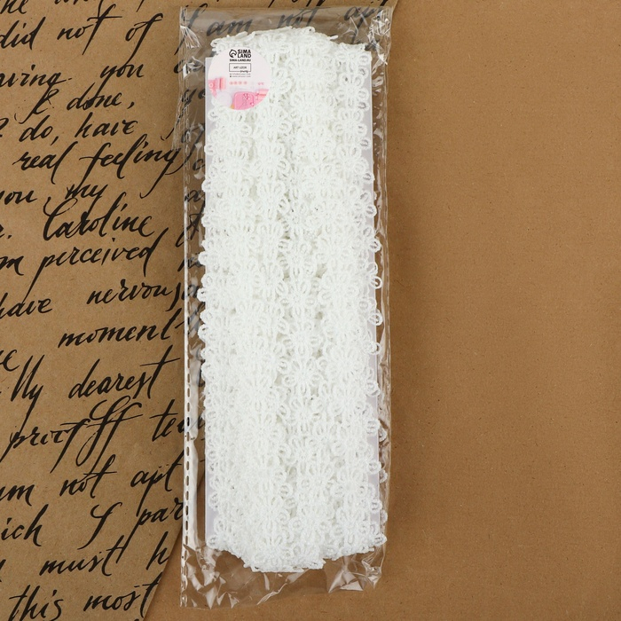 Кружево гипюровое, 15 мм × 14 ± 1 м, цвет белый