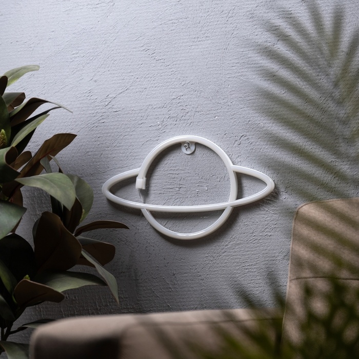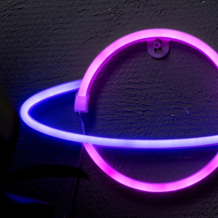 Неоновая вывеска «Планета» 30 x 17.5 см, батарейки AAx3 (не в комплекте) + USB, свечение розово-синее