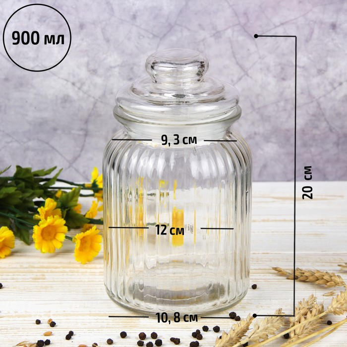 Банка стеклянная для сыпучих продуктов «Лада», 900 мл, 11×18,5 см