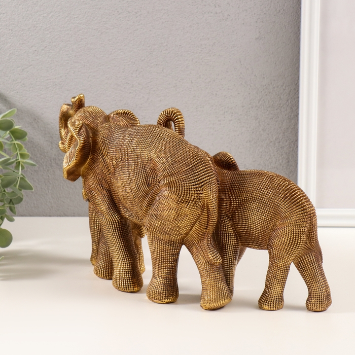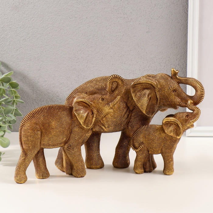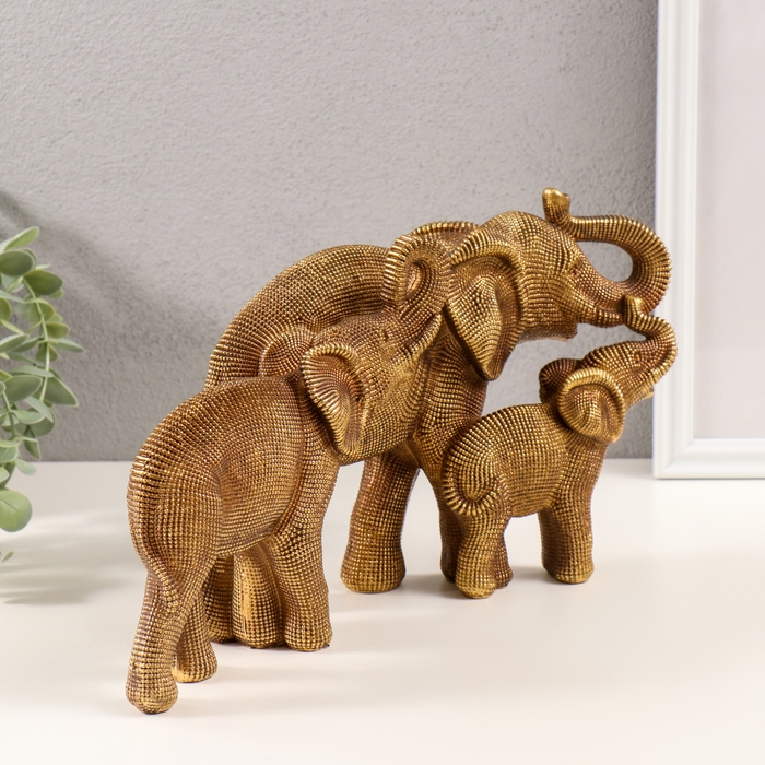Сувенир полистоун 3D "Семья слонов" тёмное золото 32,5х10х17,5 см