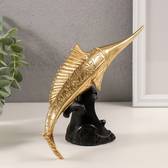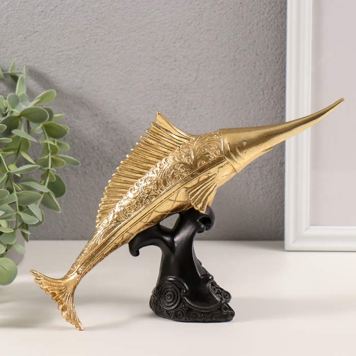 Сувенир полистоун "Меч-рыба золотая с узорами" 23х7х16 см