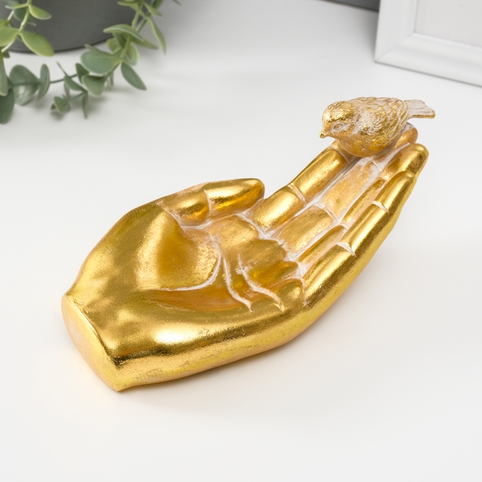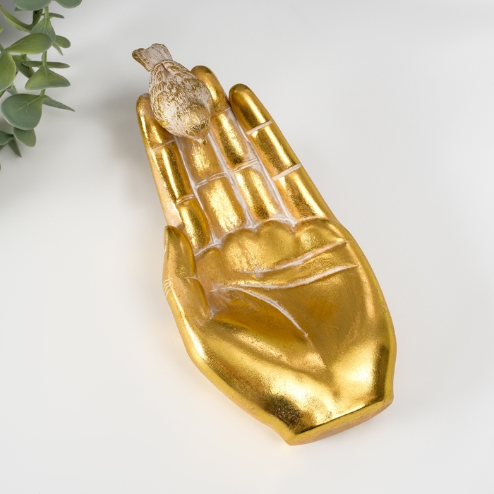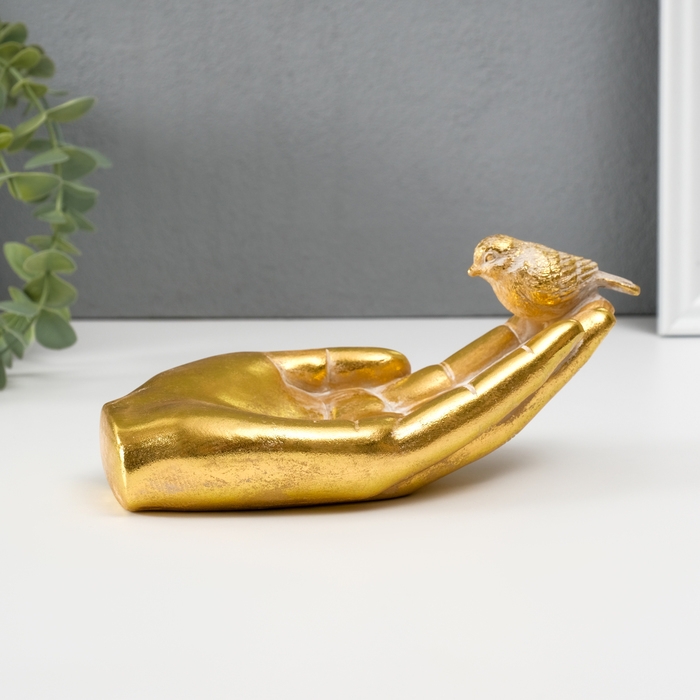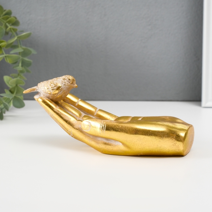 Подставка интерьерная полистоун "Птичка на ладони" золото 19,5х9,3х9,5 см