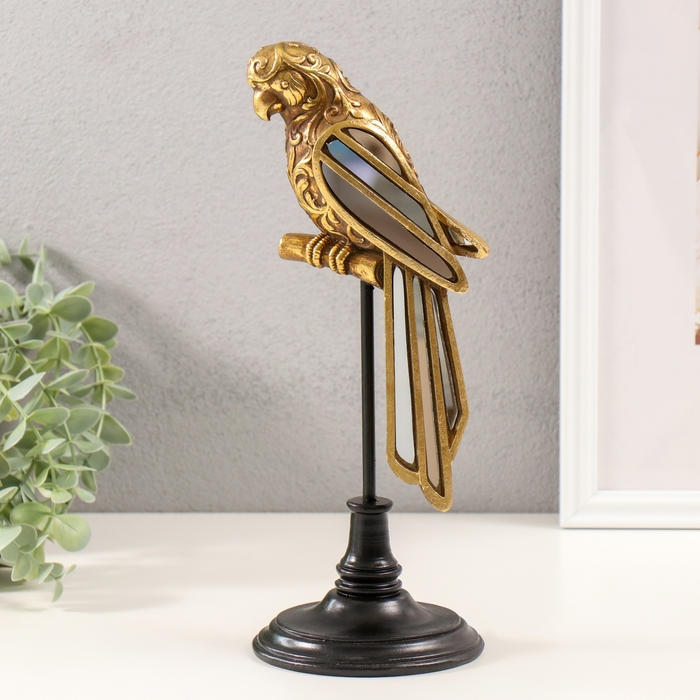 Сувенир полистоун, зеркало "Попугай Ара на жёрдочке" золото 10,5х10,5х30,5 см