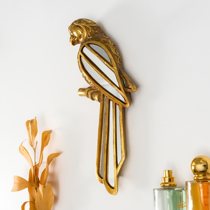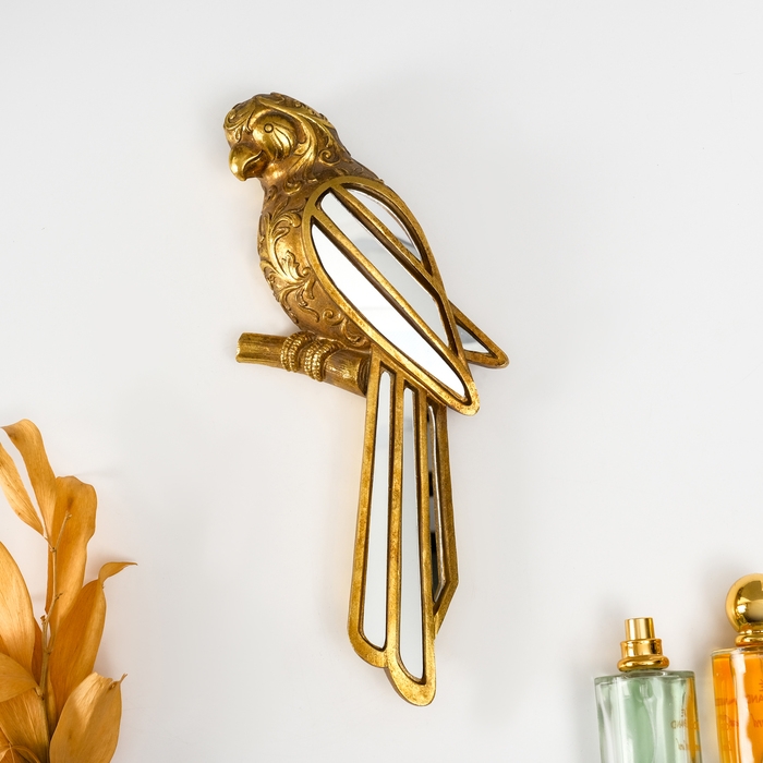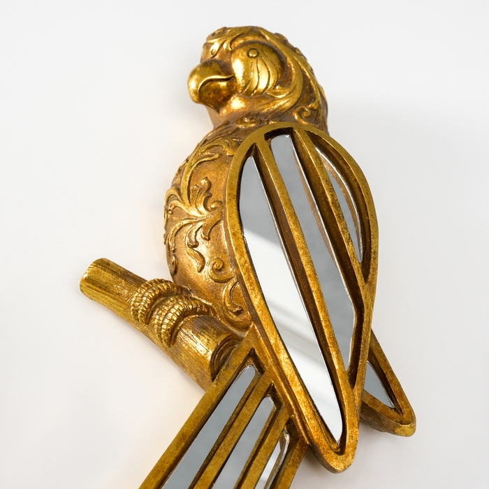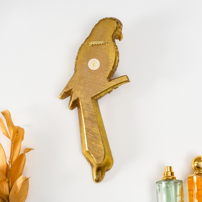 Панно интерьерное полистоун "Зеркальный попугай с узорами" золото 13х4х30 см