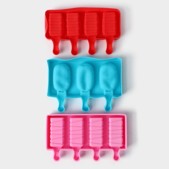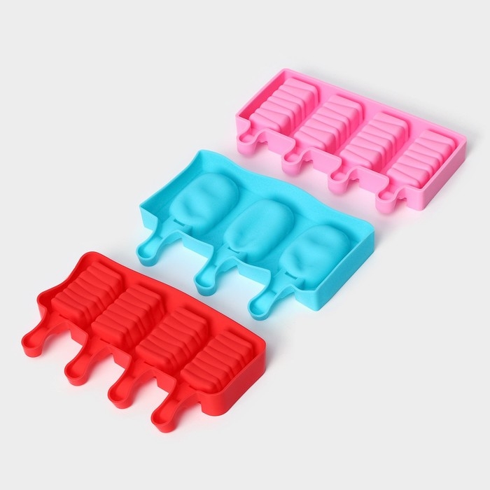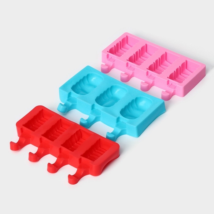 Набор форм для мороженого Доляна, 3 шт, силикон, 14×7,5×2,5 см, цвет розовый