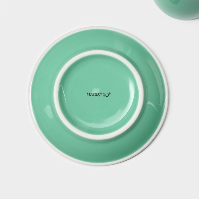 Кофейная пара фарфоровая Magistro Coffee time, 2 предмета: чашка 80 мл, блюдце d=12,5 см, цвет бирюзовый