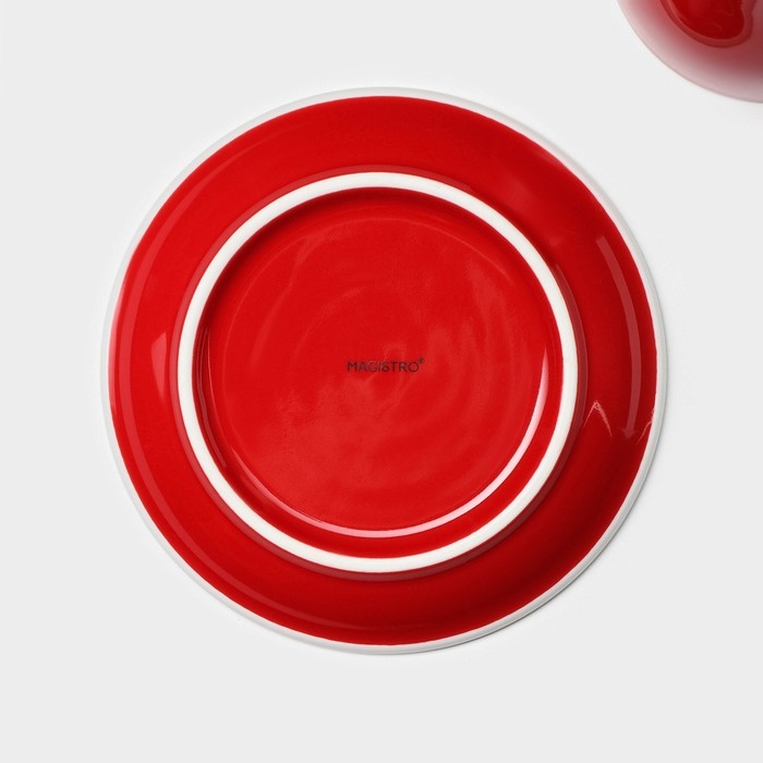 Кофейная пара фарфоровая Magistro Coffee time, 2 предмета: чашка 280 мл, блюдце d=15,5 см, цвет красный