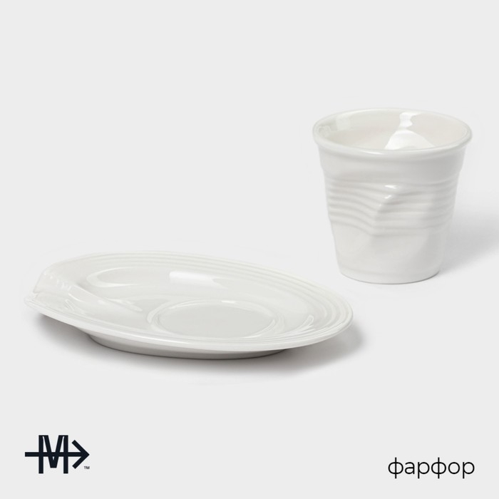 Кофейная пара фарфоровая Magistro «Бланш», 2 предмета: чашка 80 мл, блюдце 13×10,5 см