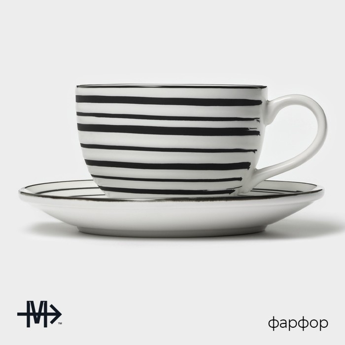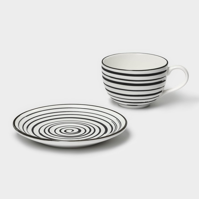 Чайная пара фарфоровая Magistro Hypnose, кружка 230 мл, блюдце 15,5 см