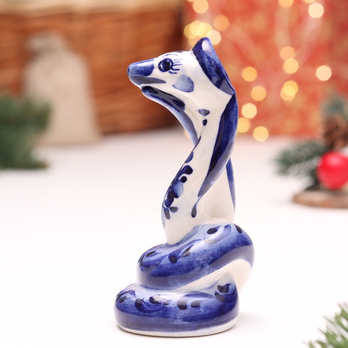 Новый год. Сувенир символ года "Змей Гоша", гжель, 4 см