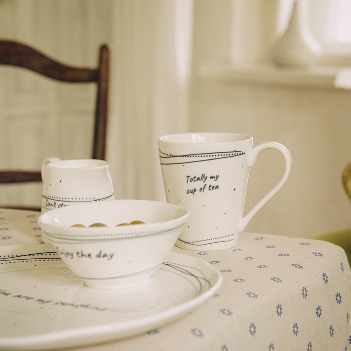 - Элегантный дизайн: кружки украшены надписями и изображениями, которые добавят нотку стиля в любое чаепитие.