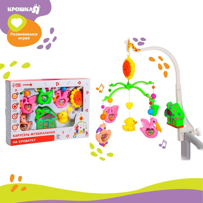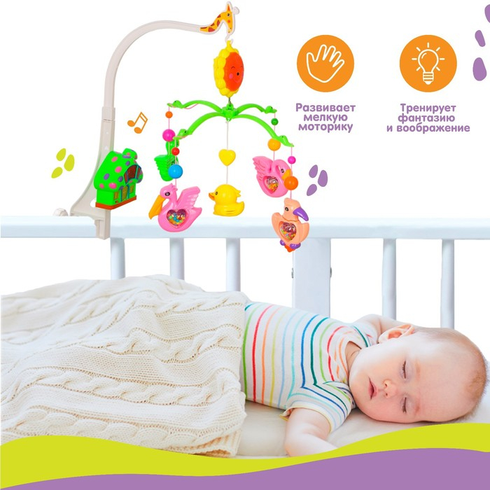 Мобиль музыкальный на кроватку «Пряничный домик. Птички погремушки», заводной, Крошка Я