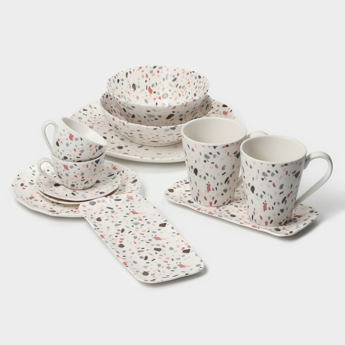 Набор чайный фарфоровый Magistro Terazzo, 4 предмета: 2 чашки 150 мл, 2 блюдца d=12,5 см