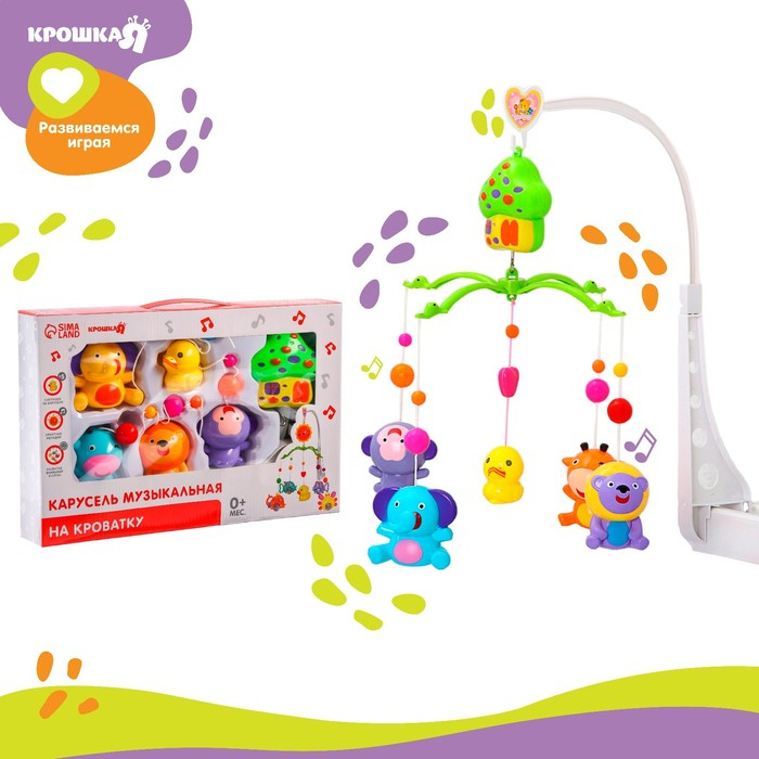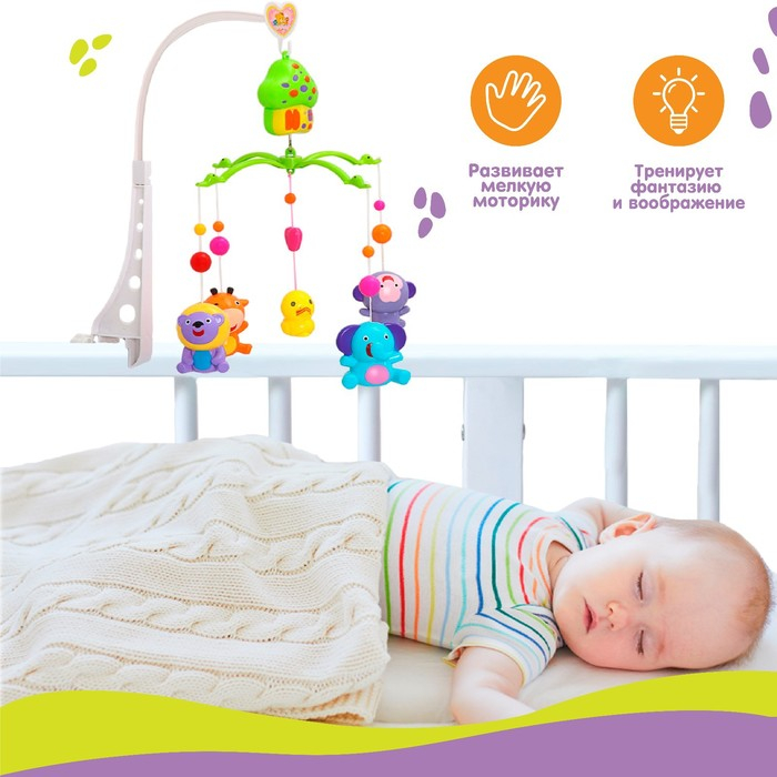 Мобиль музыкальный на кроватку «Домик. Джунгли №2», заводной, Крошка Я