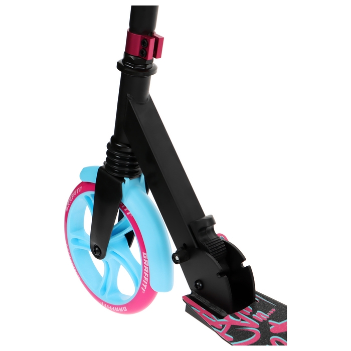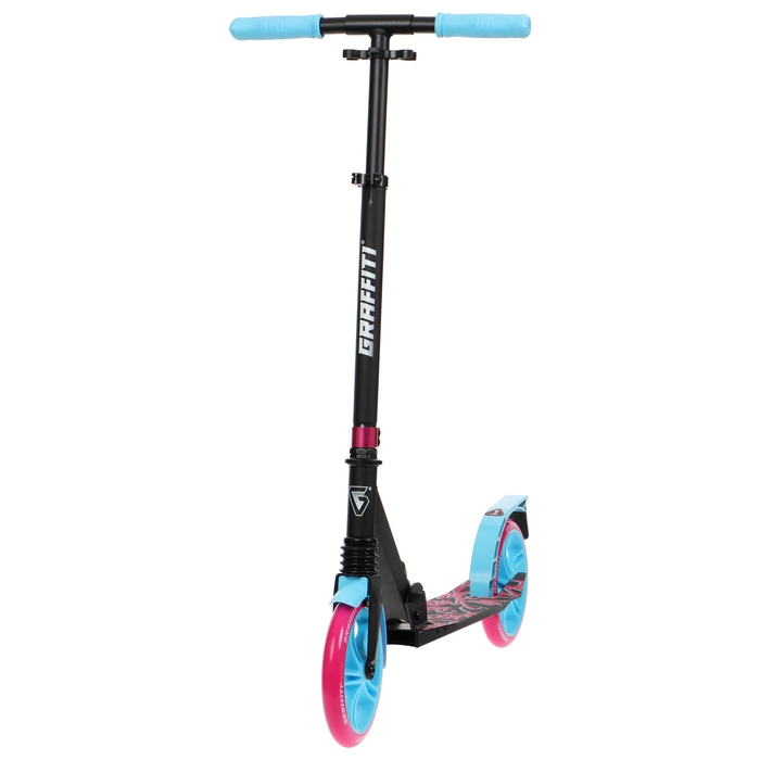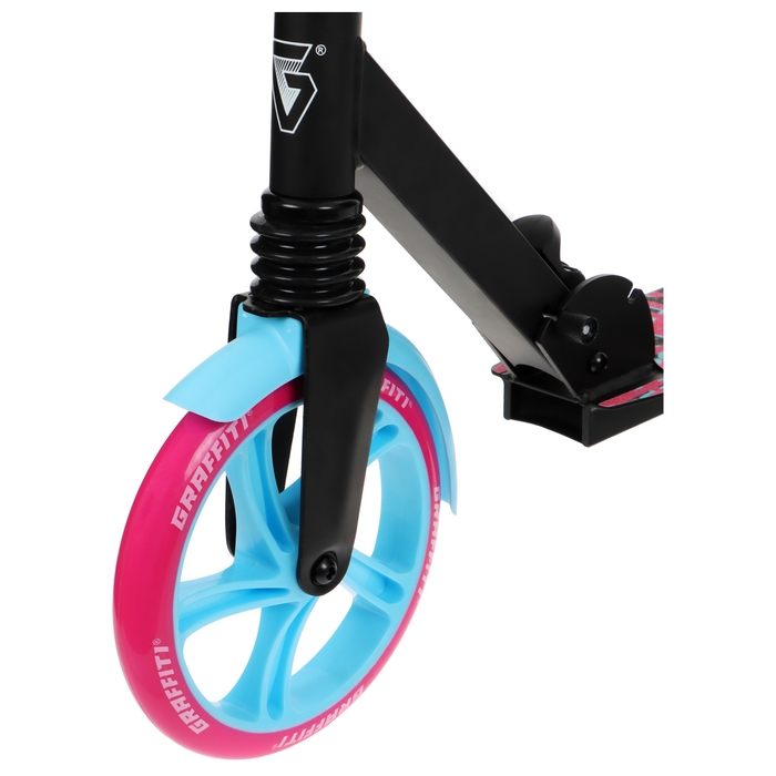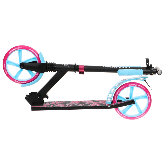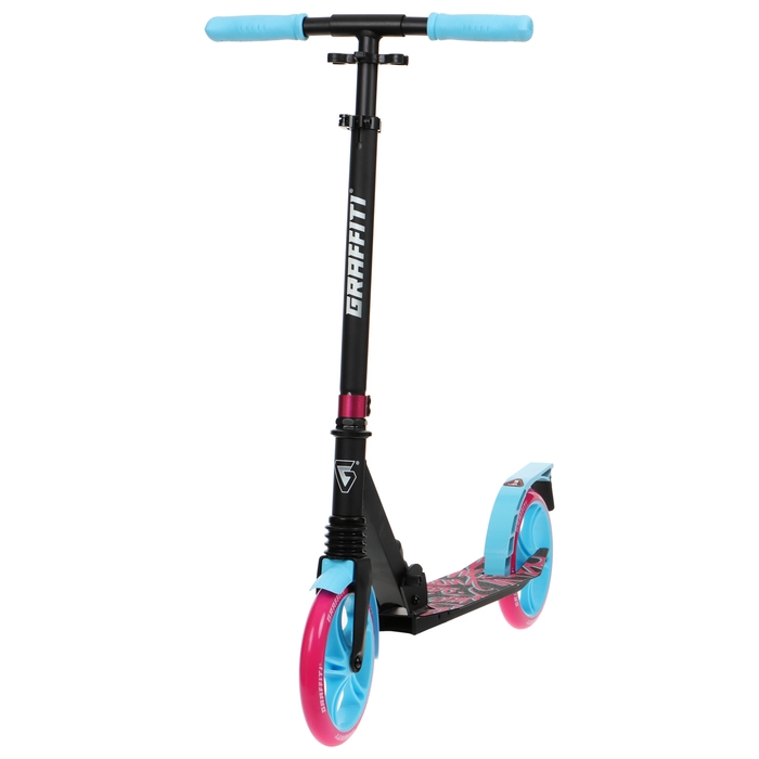 Самокат городской GRAFFITI Lux 200, складной, колёса PU 200 мм, амортизатор передний, ABEC 11 Carbon, цвет чёрный