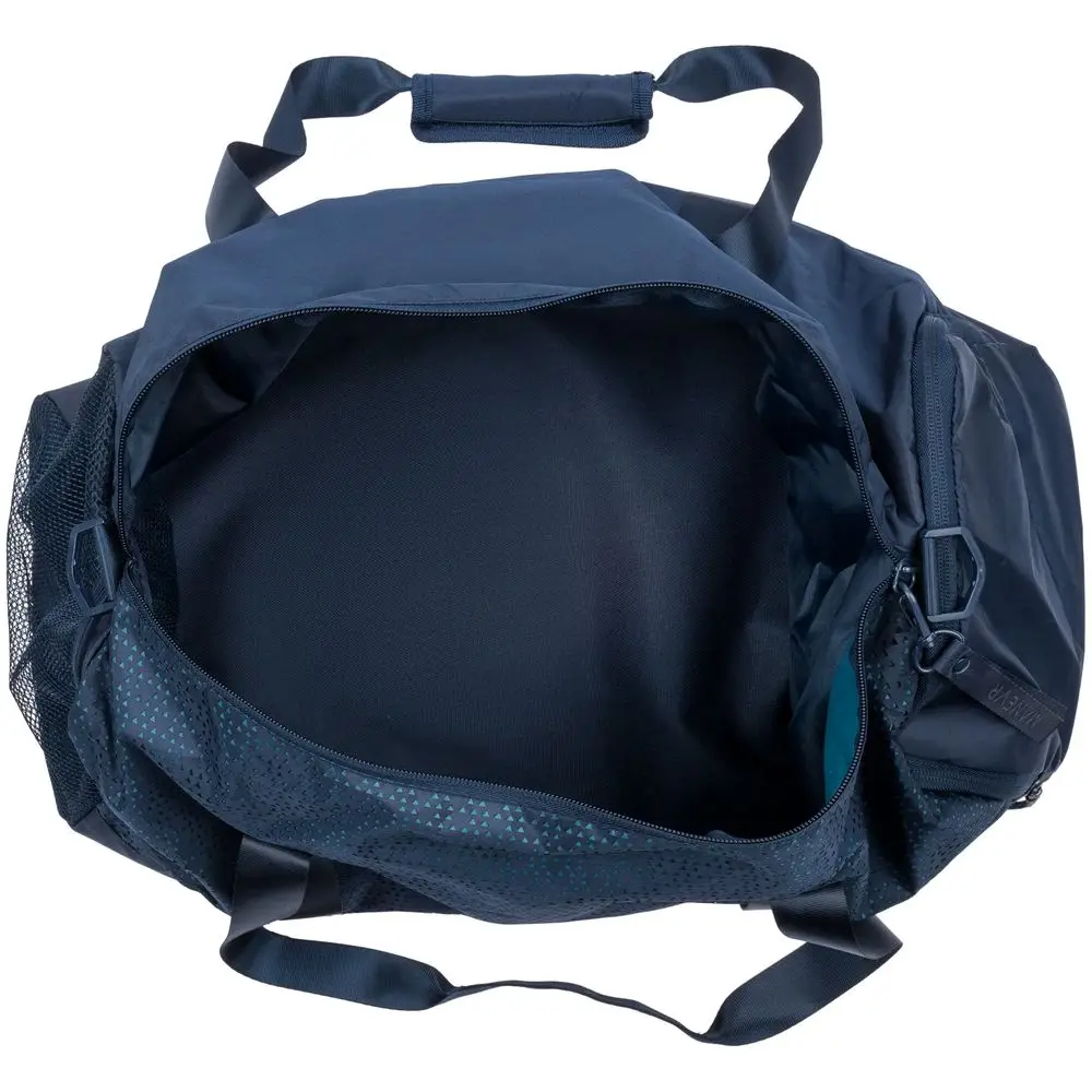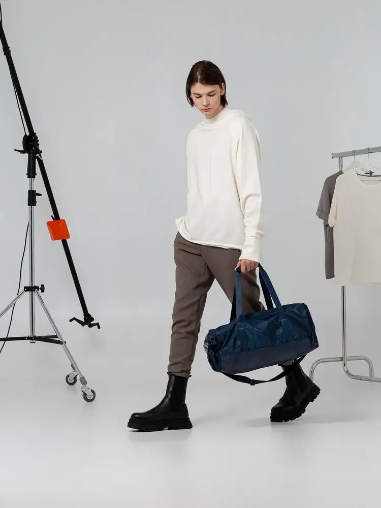 Цвет Outer Space лег в основу коллекции сумок Triangel, позволяя создать модное монохромное сочетание с изделиями Manevr темно-синего цвета. Изделия изготовлены из шелковистого полиэстера, в отделке использована лазерная перфорация паттерна.