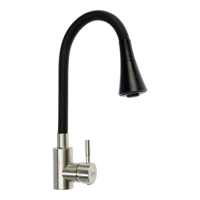 Смеситель для кухни ZEIN Z1752, нержавеющая сталь, с выдвижной лейкой, 2 режима, цвет сатин