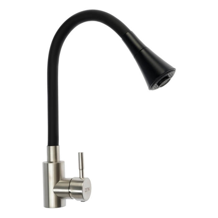 Смеситель для кухни ZEIN Z3425, силиконовый излив, картридж 35 мм, нерж. сталь, черный/сатин