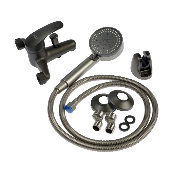 Смеситель для ванны ZEIN Z3839, однорычажный, душевой набор, лейка 5 режимов, графит