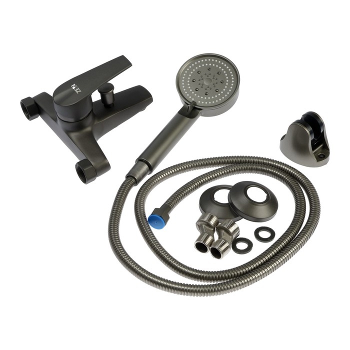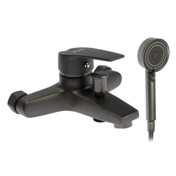 Смеситель для ванны ZEIN Z3842, однорычажный, душевой набор, лейка 5 режимов, графит
