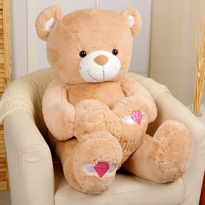 Мягкая игрушка «Медведь» с сердцем, 115 см, цвет бежевый