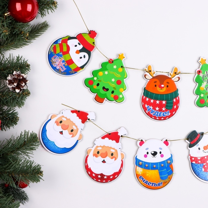 Гирлянда-игрушки из 10 шт, размер флажка 10,4х8,3 см