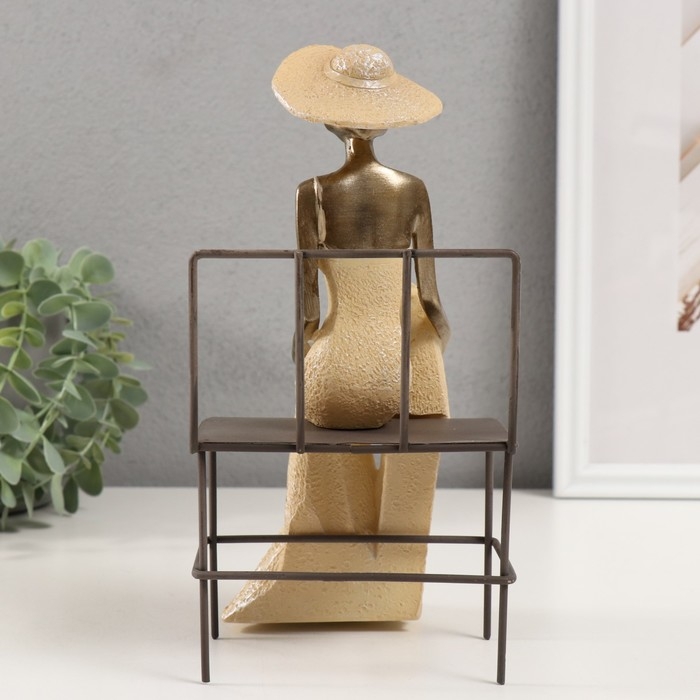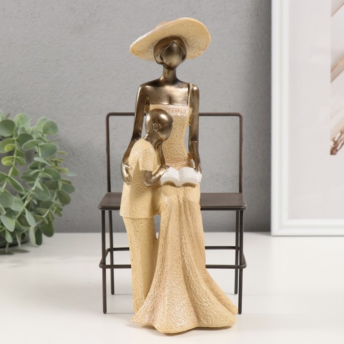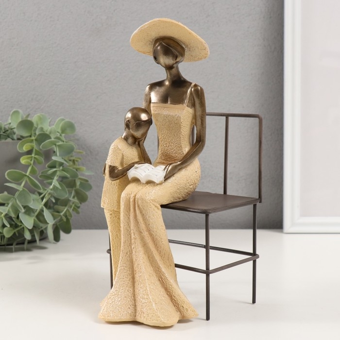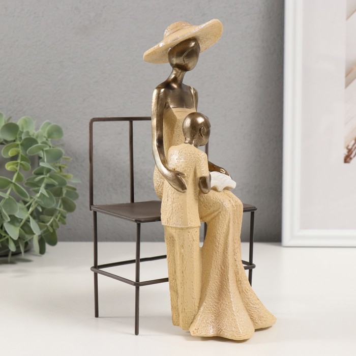 Сувенир полистоун "Леди в бежевом с ребёнком" 13х12,5х24 см