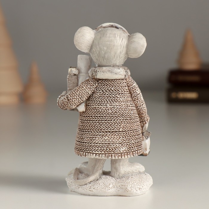 Сувенир полистоун "Белая мышка с покупками в руках" 5,5х4х10 см