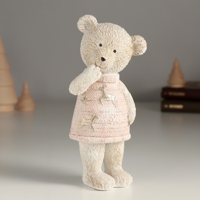 Сувенир полистоун "Удивленный мишка в розовом свитере" 7,5х5,5х16 см
