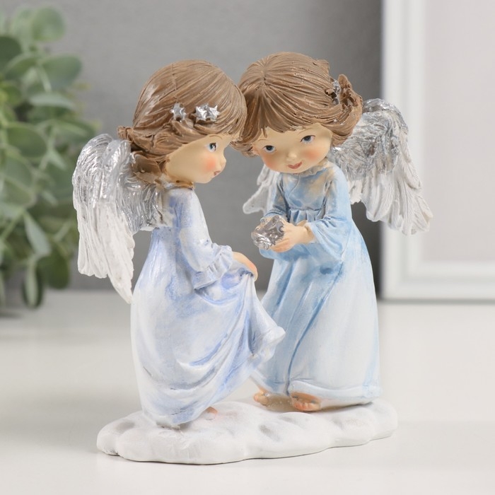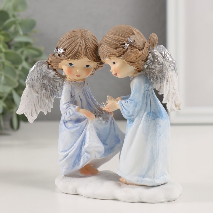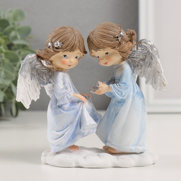 Сувенир полистоун "Ангелочки в голубых платьях" 12,5х7х12 см