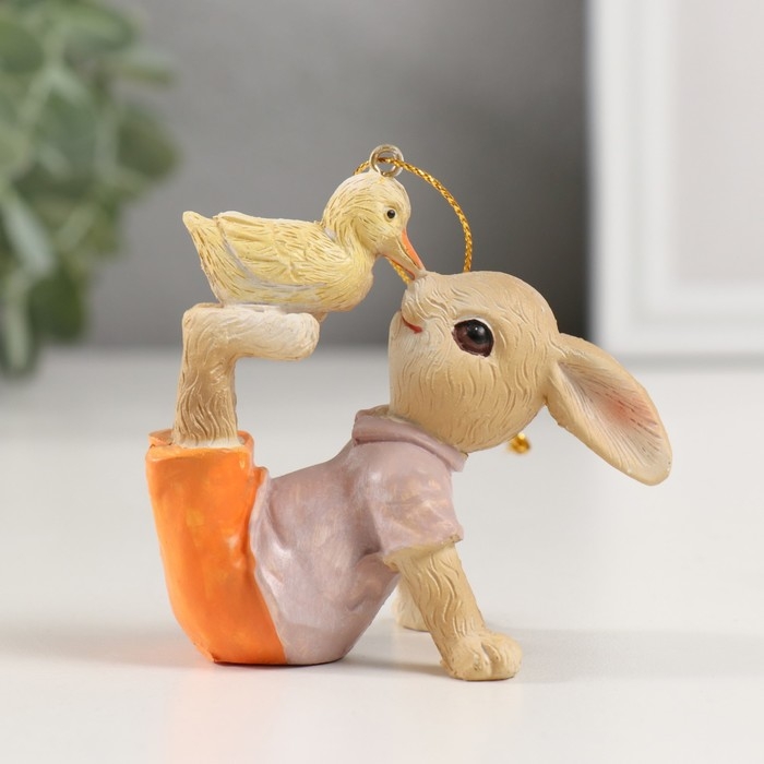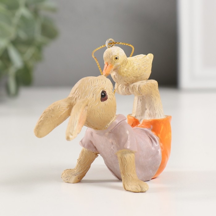 Сувенир полистоун подвеска "Зайка с жёлтым птенчиком" 7,5х5х7 см
