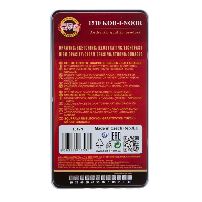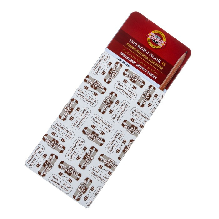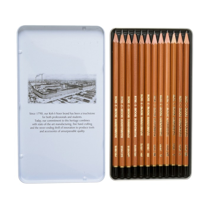 Набор карандашей чернографитных разной твердости 12 штук Koh-I-Noor 1512N ART, 8B-2H, в металлическом пенале